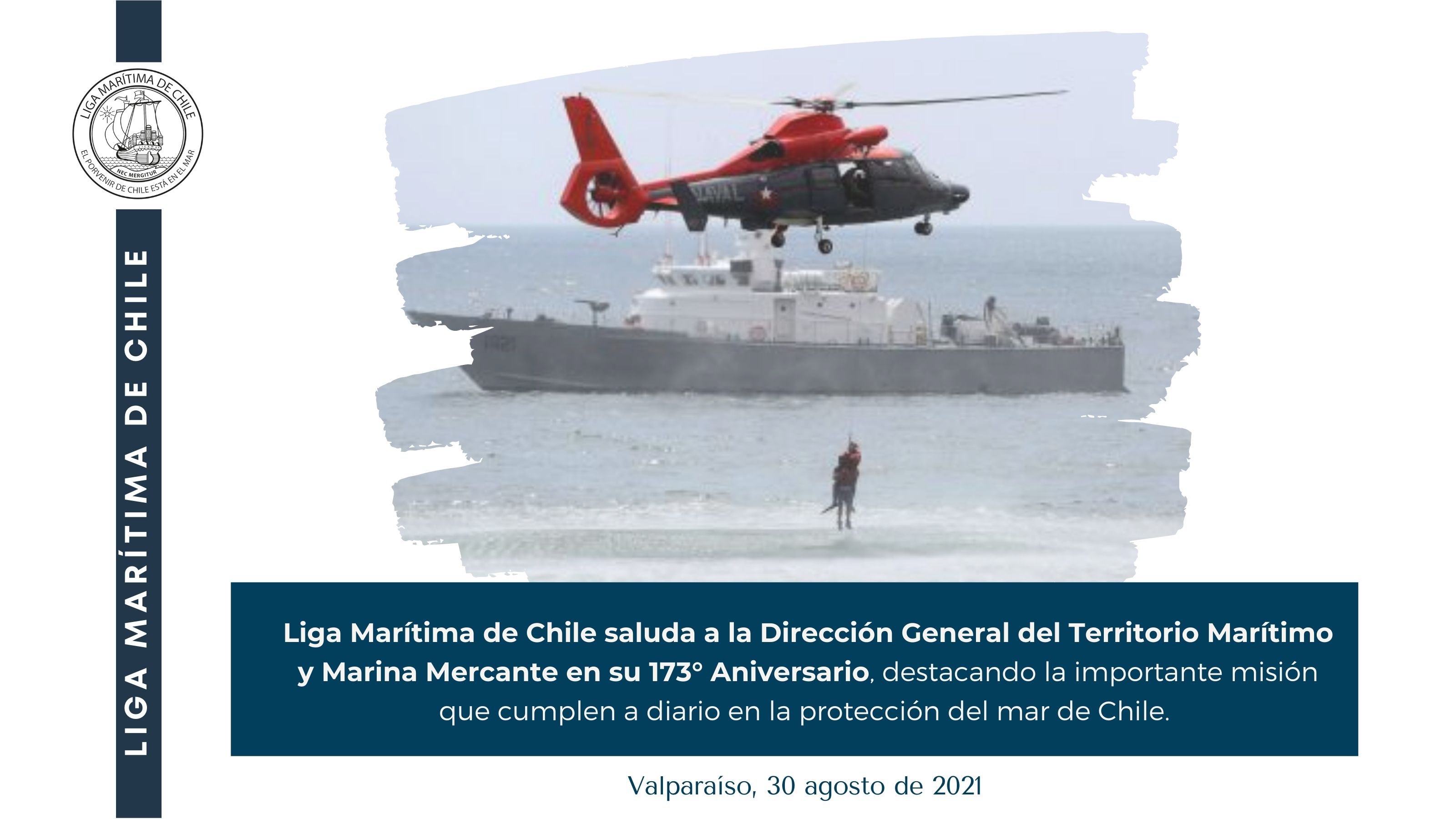 Liga Marítima de Chile saluda a la Dirección General del Territorio Marítimo y Marina Mercante en su 173° Aniversario, destacando la importante misión que cumplen a diario en la protección del mar de Chile.