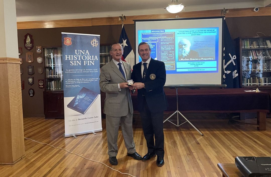 La Liga Marítima de Chile celebró el Cuarto Coloquio del año 2023, evento que contó con la participación del ex coronel del Ejército, académico de la Universidad Finis Terrae y experto ONU, Bernardo Castro Salas, quien presentó la charla "Gestión del Riesgo de Desastres en el Ámbito Marítimo".