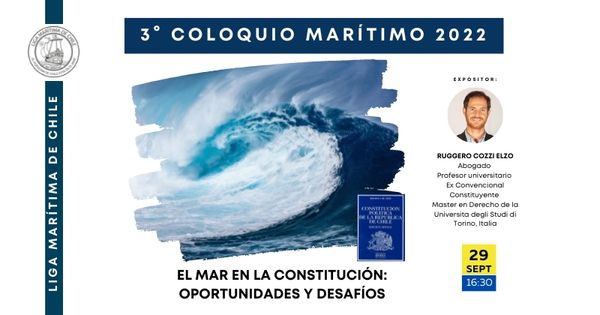 El Tercer Coloquio Marítimo ‘El Mar en la Constitución: Oportunidades y Desafíos’ se realizará el jueves 29 de septiembre, a las 16.30 horas.