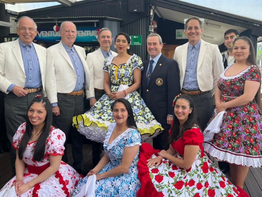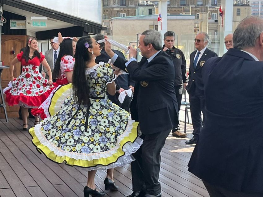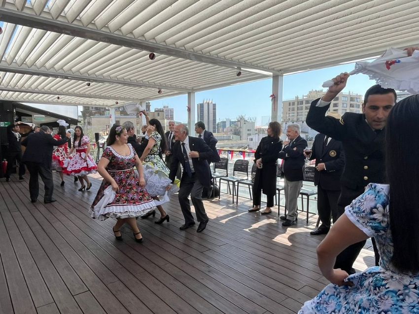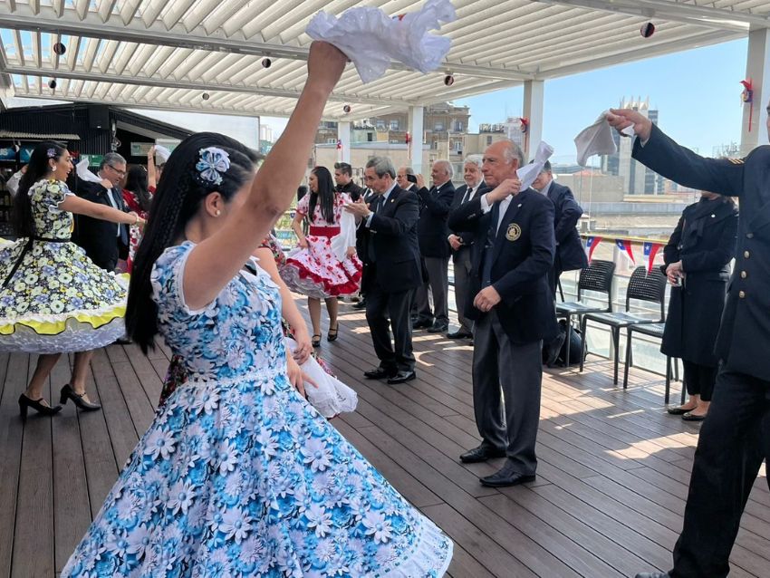 La música y el baile nacional también formaron parte de la celebración con la presentación del grupo de la Armada de Chile, quienes animaron a los presentes con pies de cueca que pusieron a todos a aplaudir, creando un ambiente de camaradería muy festivo y muy chileno.