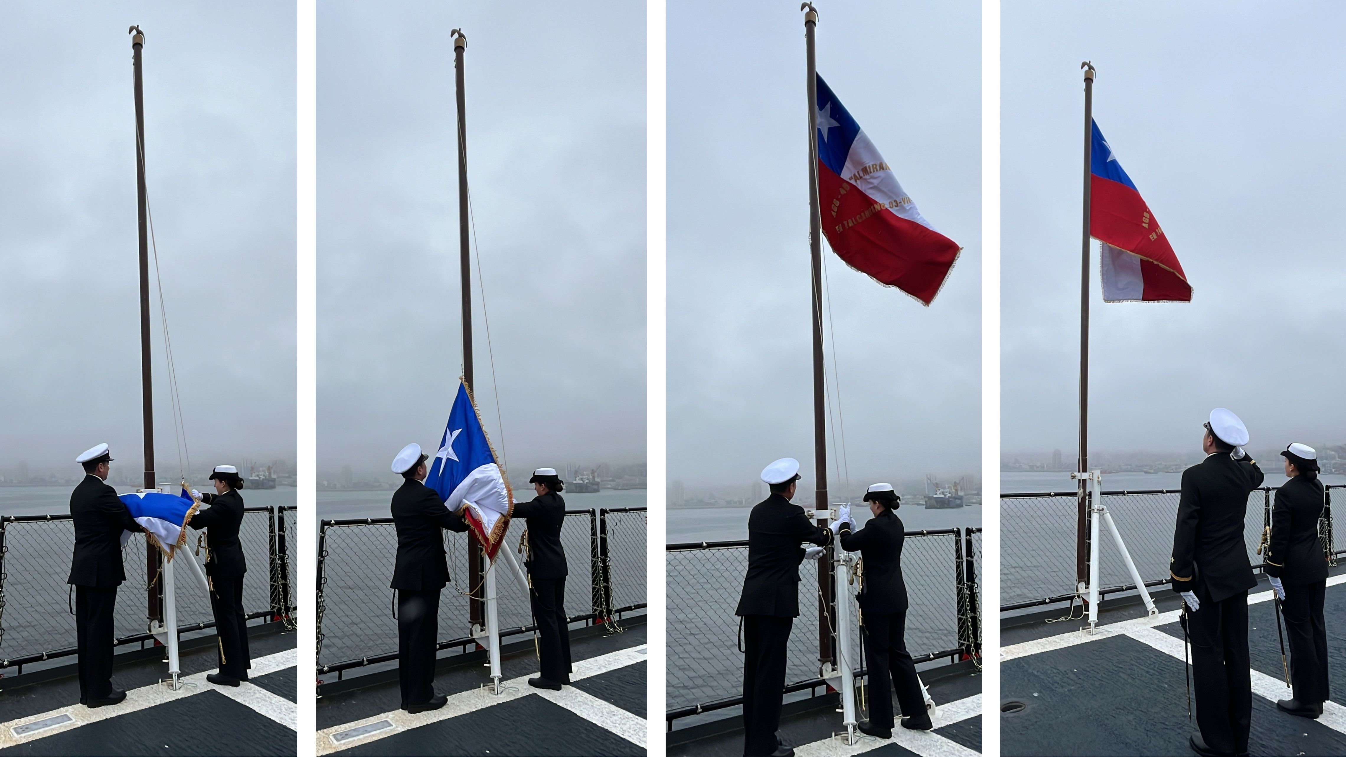 El Pabellón de Combate, además de un símbolo, representa el honor, valor y la determinación de aquellos marinos que surcan los mares en defensa de la Patria. ‘Al ser izado en el Almirante Viel, este pabellón acompañará al rompehielos en su misión en la Antártica, fortaleciendo la presencia de Chile en el continente blanco y consolidando la labor científica y logística del país en esta parte del planeta’, enfatizó el presidente de Liga Marítima de Chile, Edmundo González Robles.
