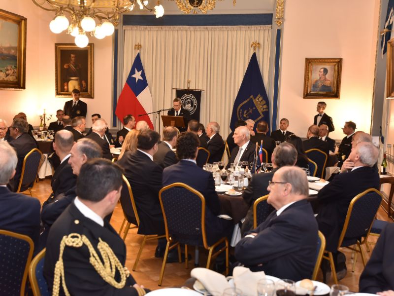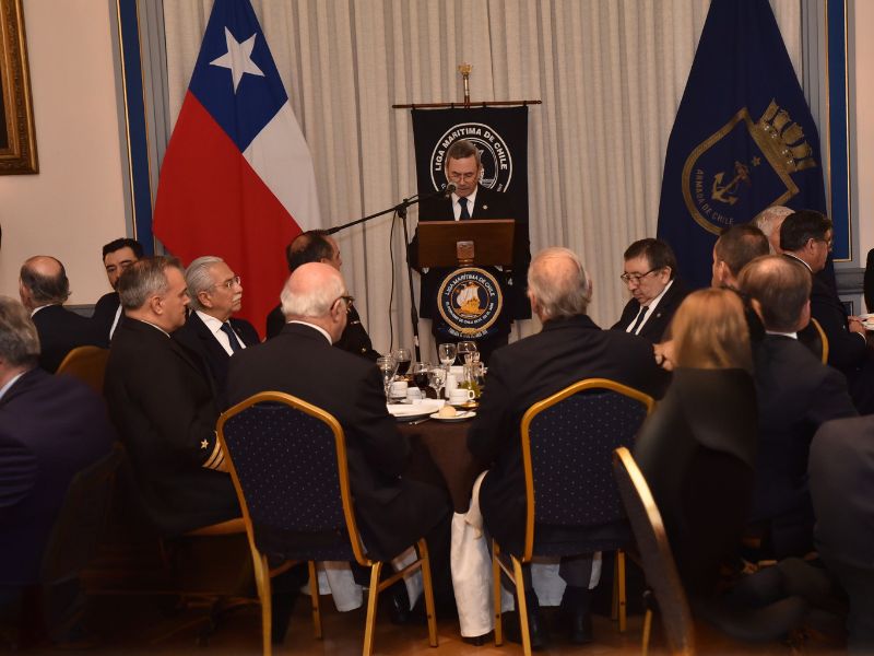 Durante el encuentro, el presidente de la Liga Marítima de Chile, Edmundo González Robles, rindió un sentido homenaje al comandante en jefe de la Armada de Chile, almirante Juan Andrés de la Maza Larraín, quien se encuentra próximo a culminar su mandato. “Usted ha sido un marino que ha honrado no sólo el uniforme, sino también la historia y el alma de la institución que ha servido por más de cuatro décadas”, señaló González Robles.