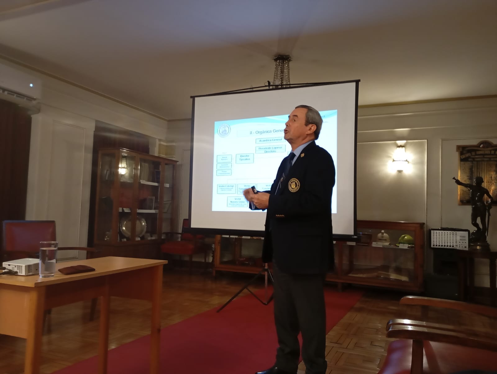 El presidente de Ligamar, Edmundo González Robles, que encabezó la delegación integrada por otros miembros del directorio, fue el encargado de entregar personalmente el galvano al director de la Primera Compañía de Bomberos de Valparaíso, Alfredo Bruce Garcia. En la oportunidad, dictó una charla en la que resumió los más de 111 años de historia de la Liga, destacando su origen en Valparaíso en 1914 y su misión permanente de fomentar la conciencia marítima nacional.