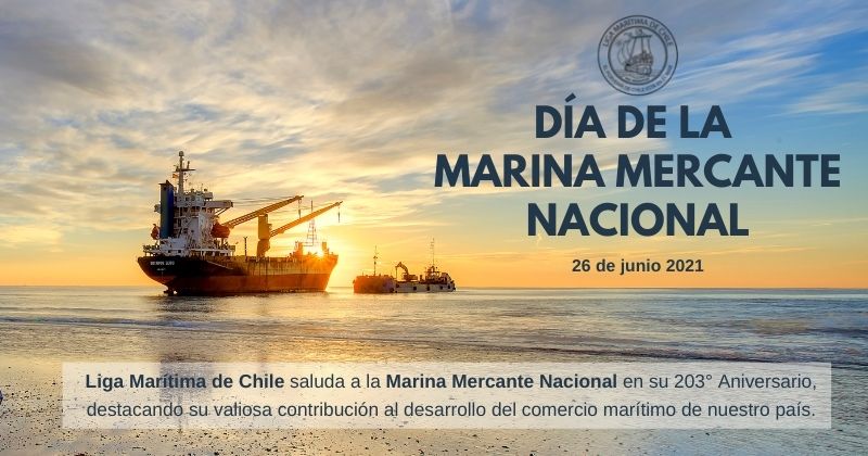 Como Liga Marítima de Chile saludamos a la Marina Mercante Nacional y a todo su capital humano en su 203° Aniversario, destacando el valioso aporte que realizan al comercio marítimo de nuestro país, especialmente, en medio de una grave crisis de pandemia.