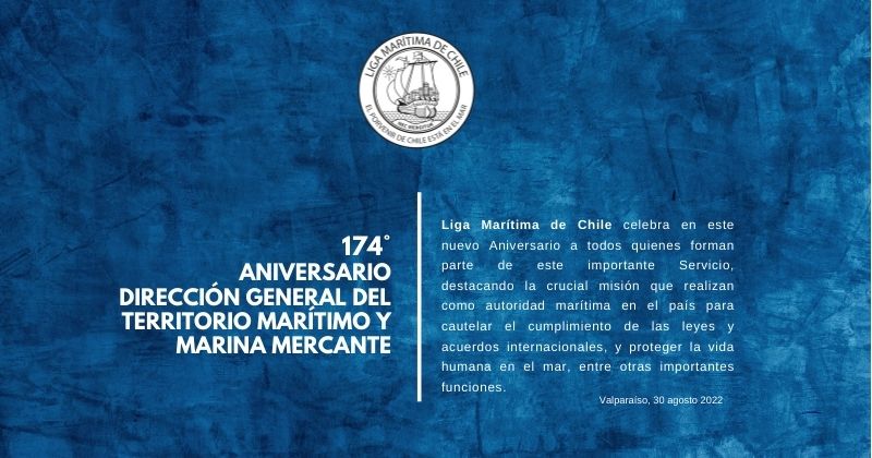 Liga Marítima de Chile celebra en este nuevo Aniversario a todos quienes forman parte de este importante Servicio, destacando la crucial misión que realizan como autoridad marítima en el país para cautelar el cumplimiento de las leyes y acuerdos internacionales, y proteger la vida humana en el mar, entre otras importantes funciones.